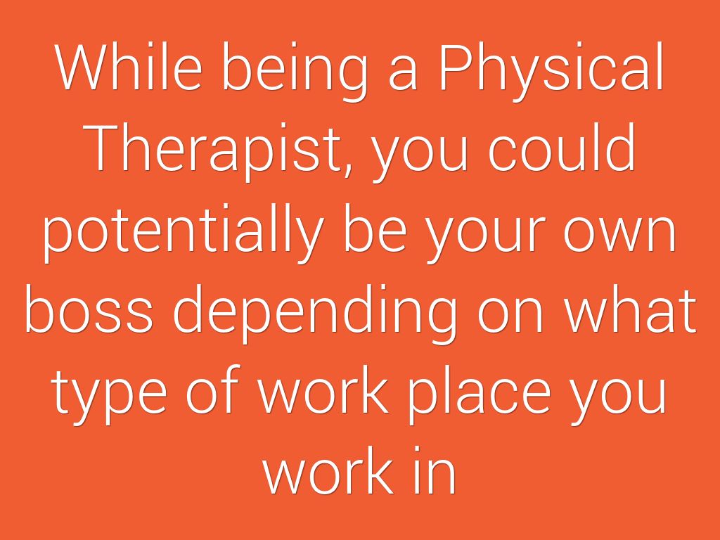 While being a Physical Therapist, you could potentially be your own boss depending on what type of work place you work in