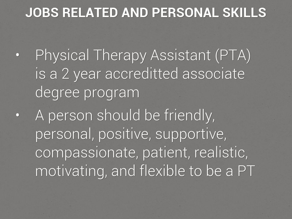- A person should be friendly, personal, positive, supportive, compassionate, patient, realistic, motivating, and flexible to be a PT