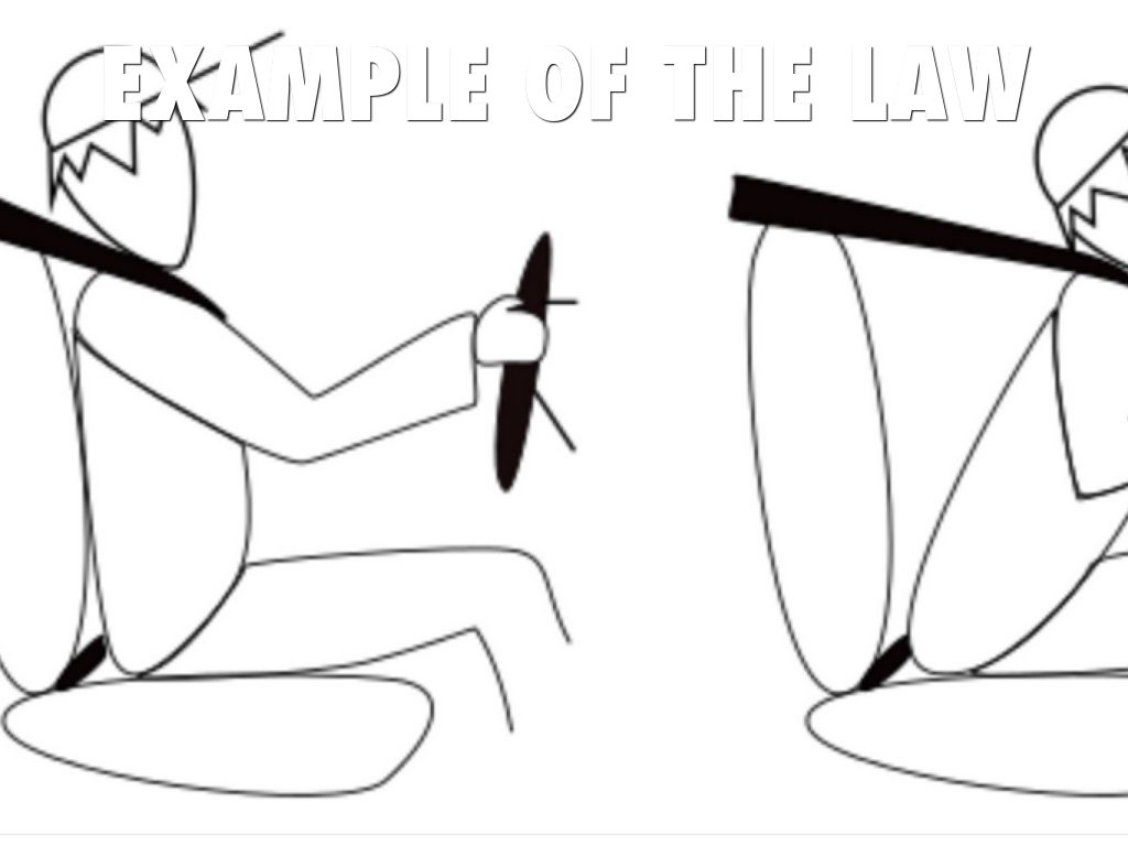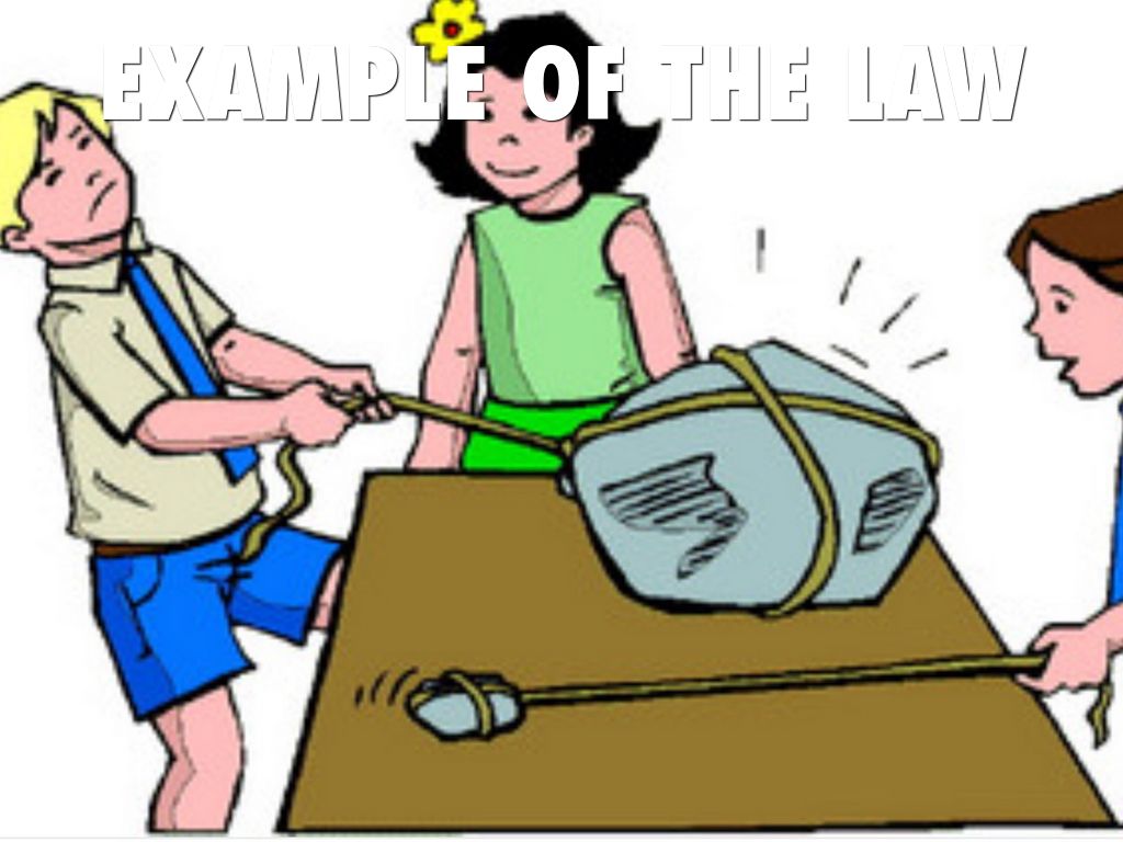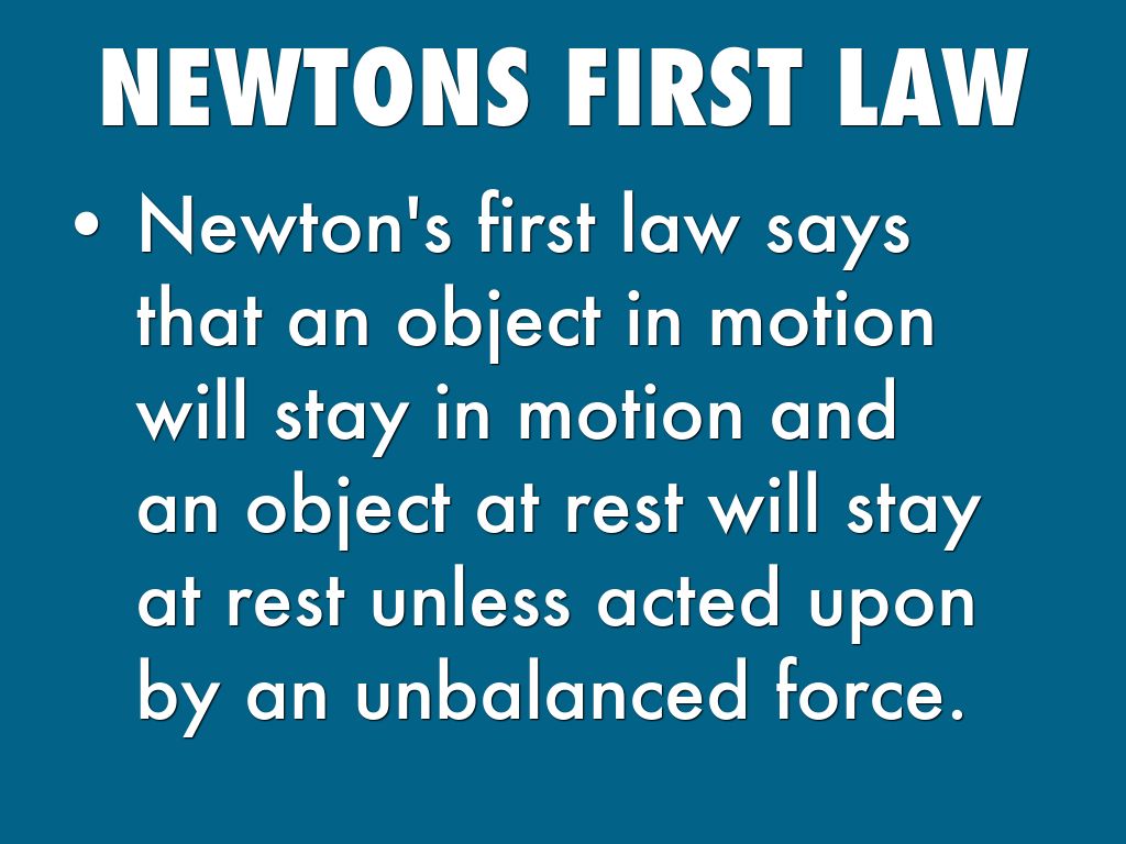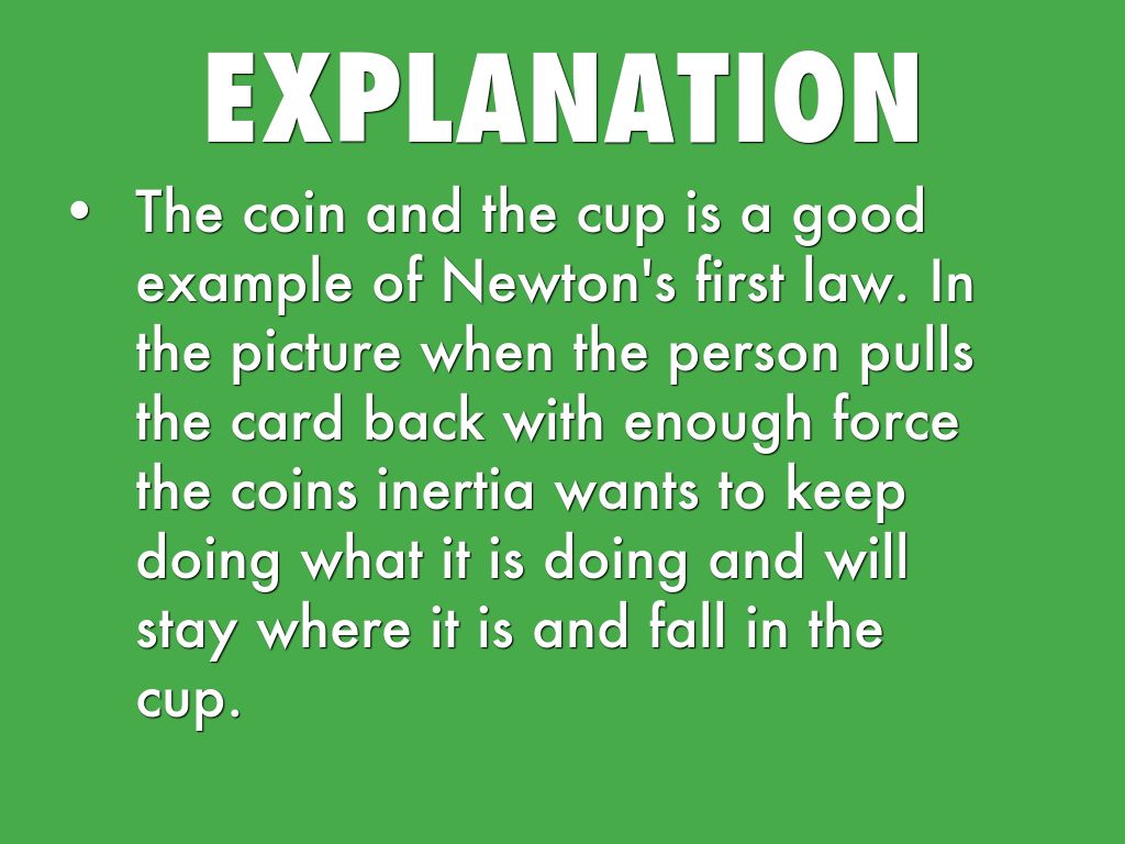 The coin and the cup is a good example of Newton's first law. In the picture when the person pulls the card back with enough force the coins inertia wants to keep doing what it is doing and will stay where it is and fall in the cup.