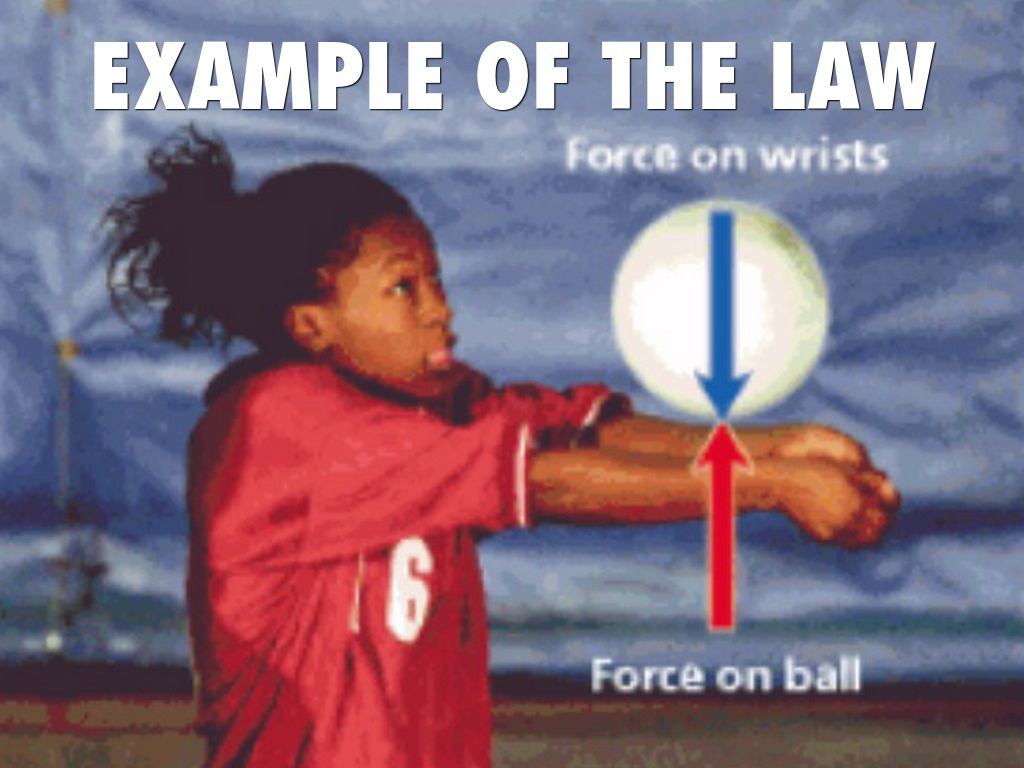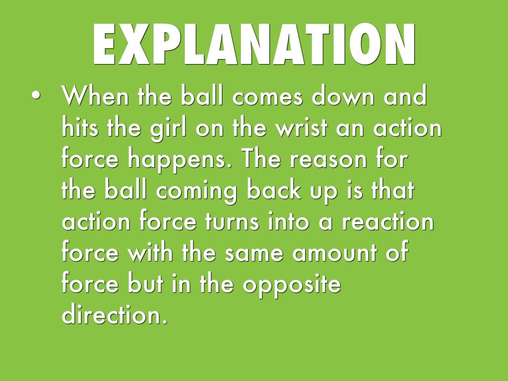 When the ball comes down and hits the girl on the wrist an action force happens. The reason for the ball coming back up is that action force turns into a reaction force with the same amount of force but in the opposite direction.