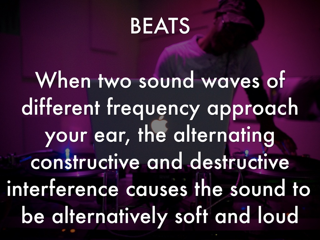 When two sound waves of different frequency approach your ear, the alternating constructive and destructive interference causes the sound to be alternatively soft and loud