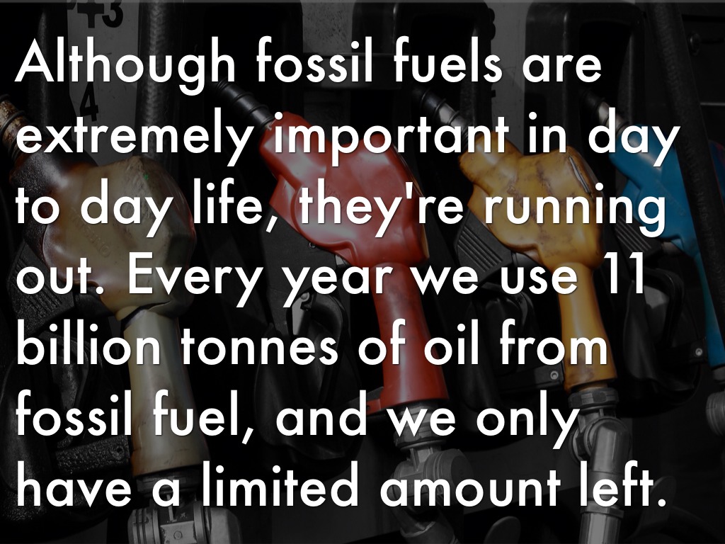 Although fossil fuels are extremely important in day to day life, they're running out. Every year we use 11 billion tonnes of oil from fossil fuel, and we only have a limited amount left.