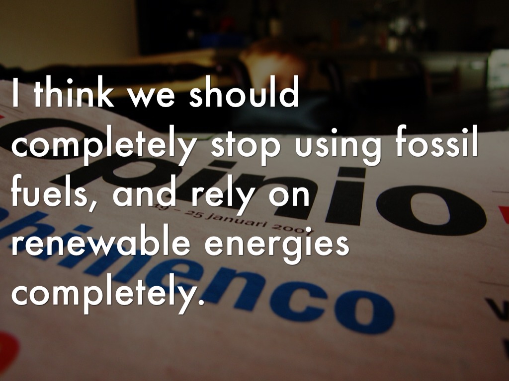 I think we should completely stop using fossil fuels, and rely on renewable energies completely.