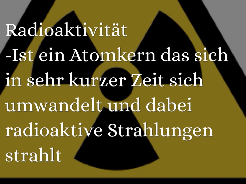 -Ist ein Atomkern das sich in sehr kurzer Zeit sich umwandelt und dabei radioaktive Strahlungen strahlt
