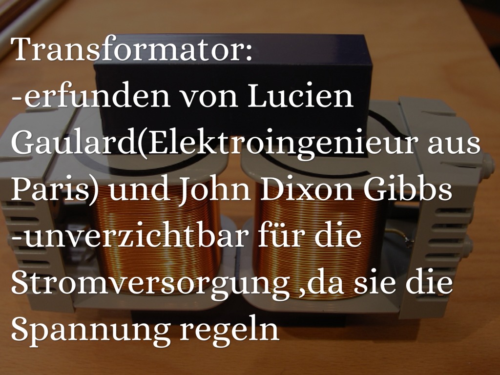 -erfunden von Lucien Gaulard(Elektroingenieur aus Paris) und John Dixon Gibbs