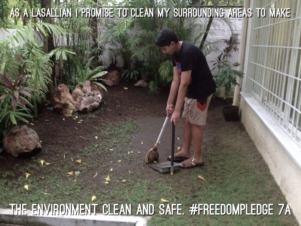 AS A LASALLIAN I PROMISTE TO CLEAN MY SURROUNDINGS TO MAKE