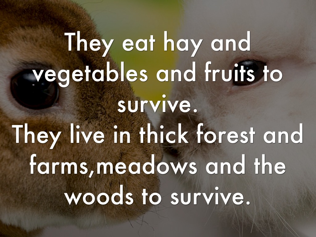 They eat hay and vegetables and fruits to survive.
