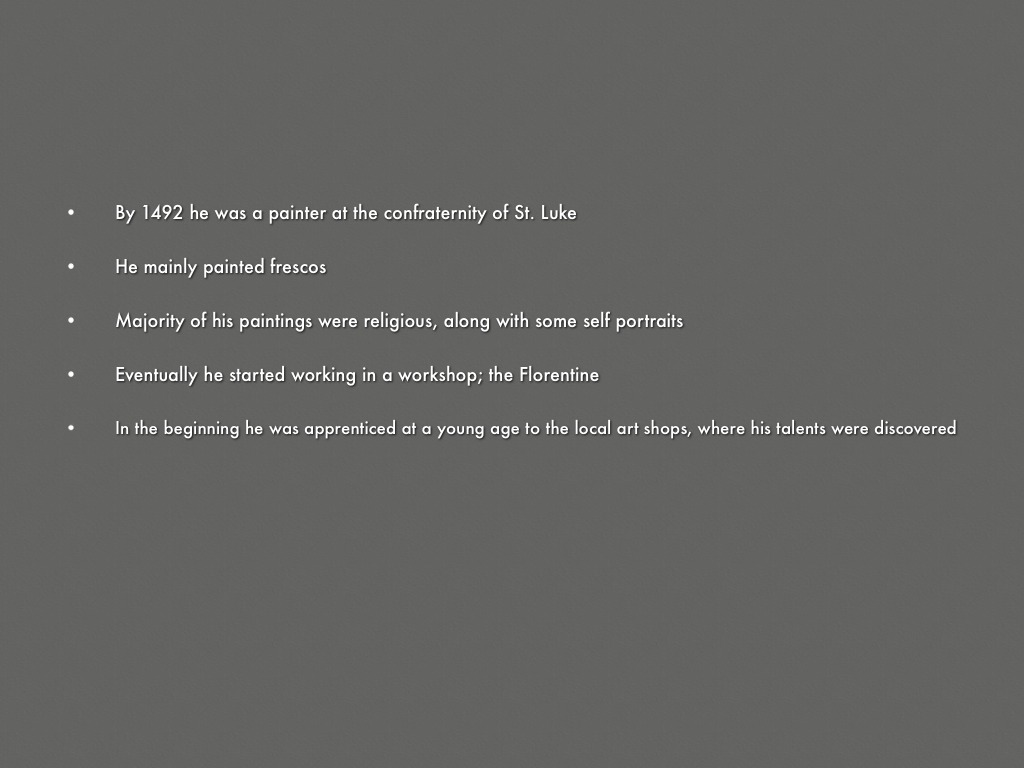 By 1492 he was a painter at the confraternity of St. Luke