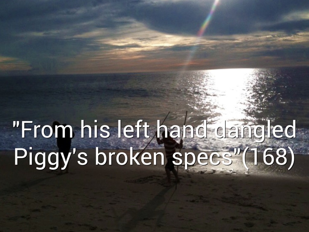 "From his left hand dangled Piggy's broken specs"(168)