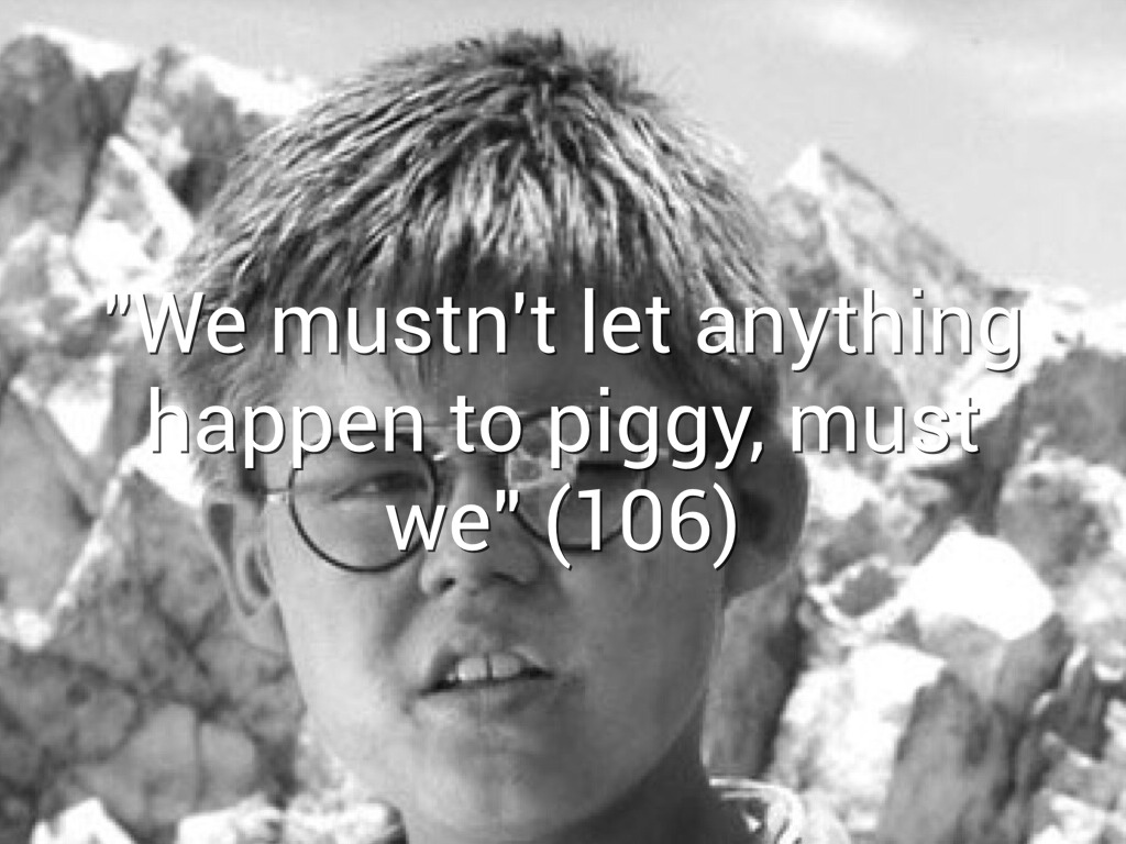 "We mustn't let anything happen to piggy, must we" (106)