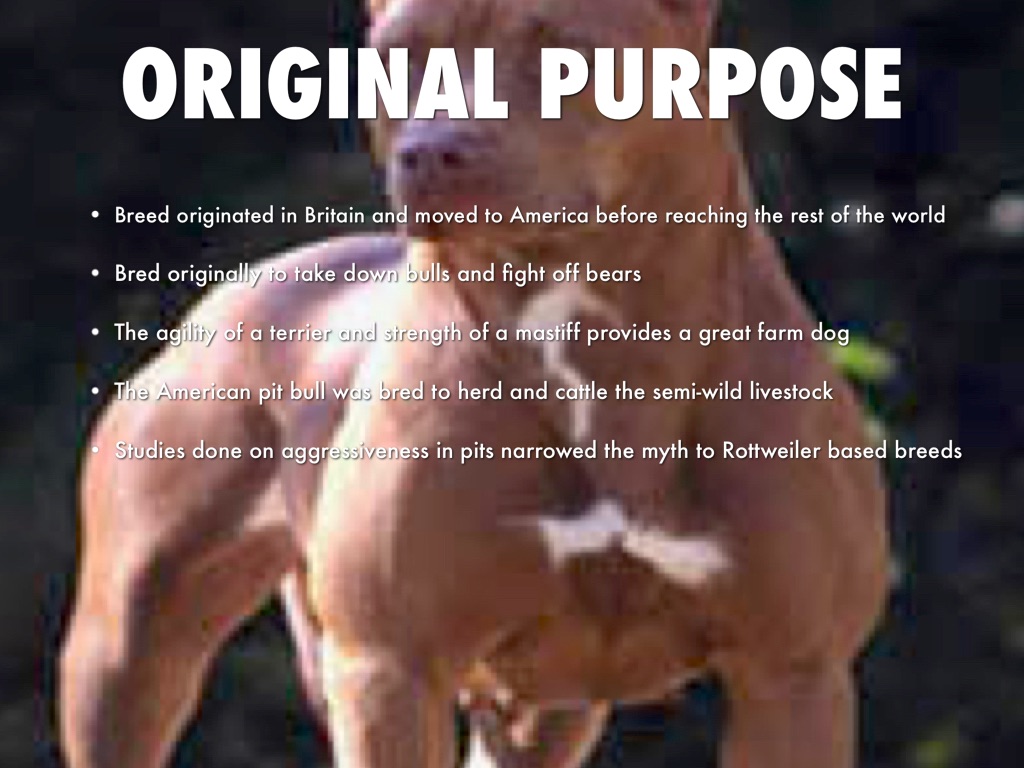 • The American pit bull was bred to herd and cattle the semi-wild livestock