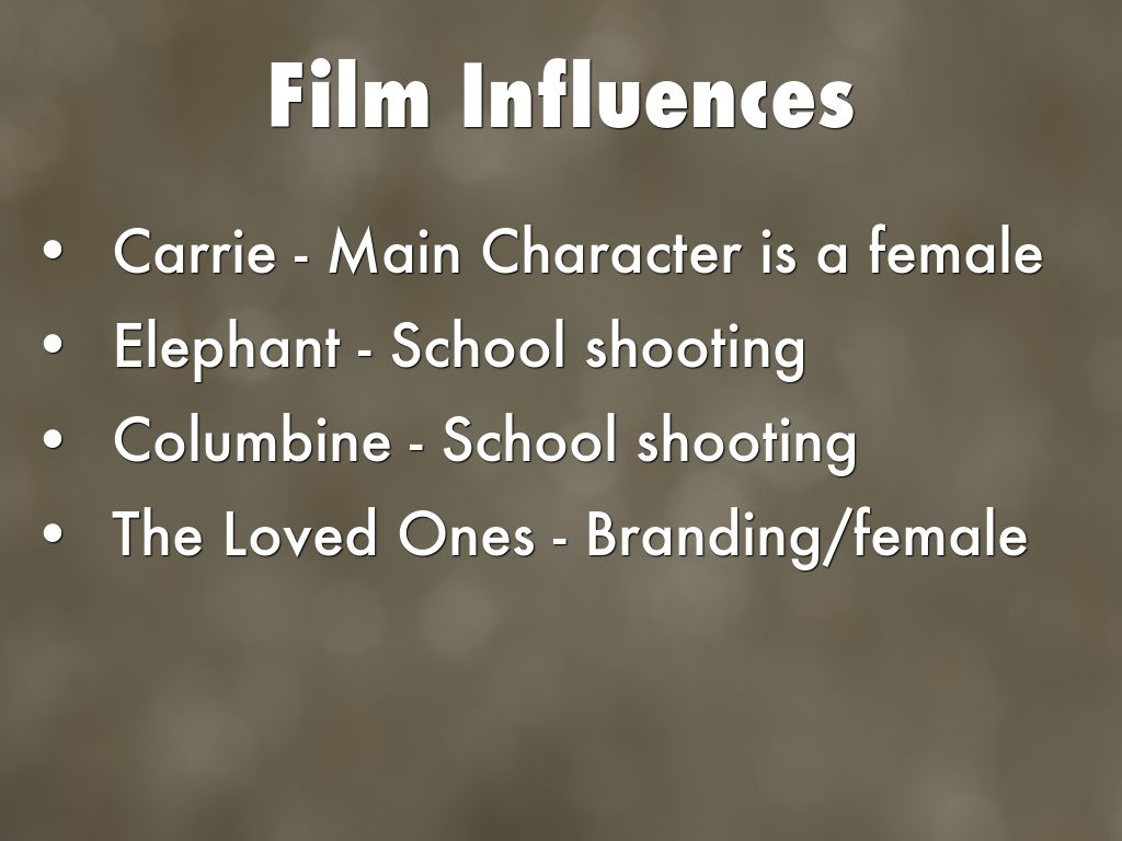 Elephant is one of our examples, as it shows troubles teens (around the same age as Tabitha) shooting down the school and so has a similar plot line.