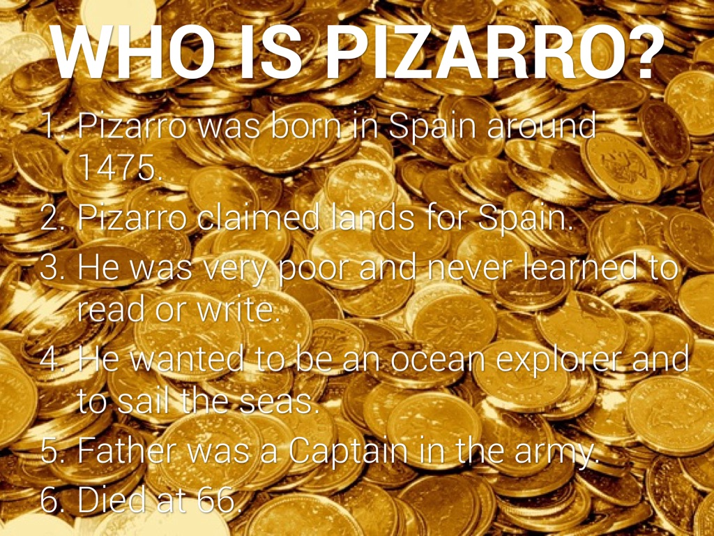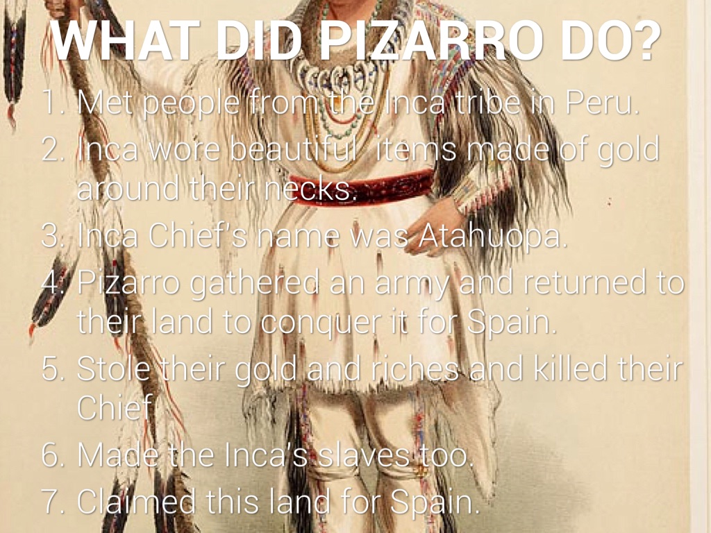 The King of Spain ordered Pizarro to go back and get all the gold from the Inca tribe and he could be the ruler of this conquered land.