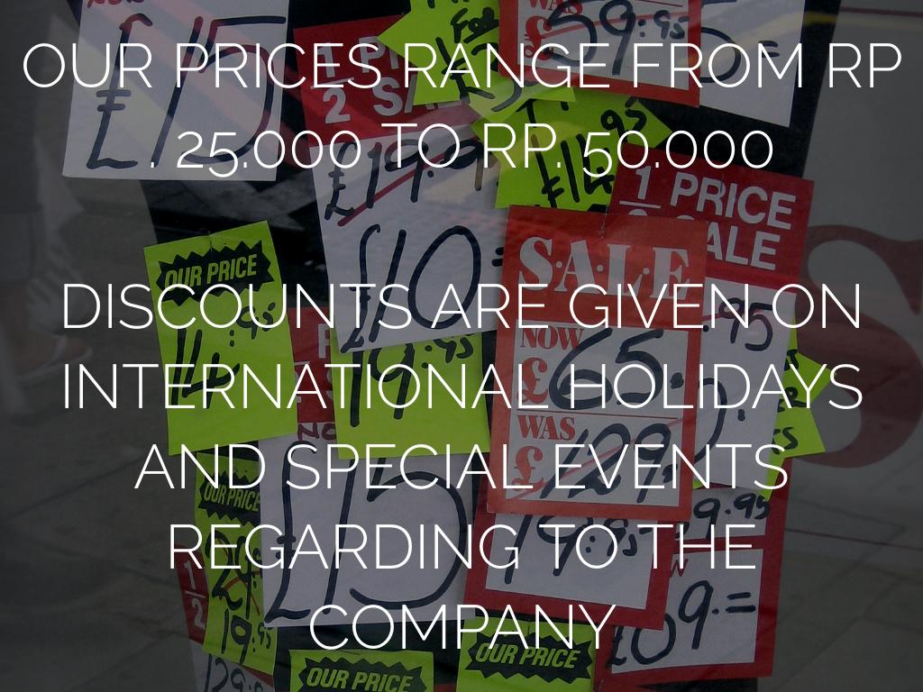 DISCOUNTS ARE GIVEN ON INTERNATIONAL HOLIDAYS AND SPECIAL EVENTS REGARDING TO THE COMPANY