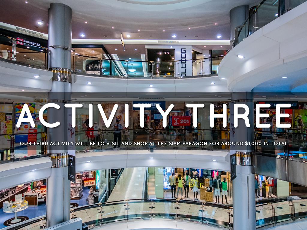 OUR THIRD ACTIVITY WILL BE TO VISIT AND SHOP AT THE SIAM PARAGON FOR AROUND $1,000 IN TOTAL