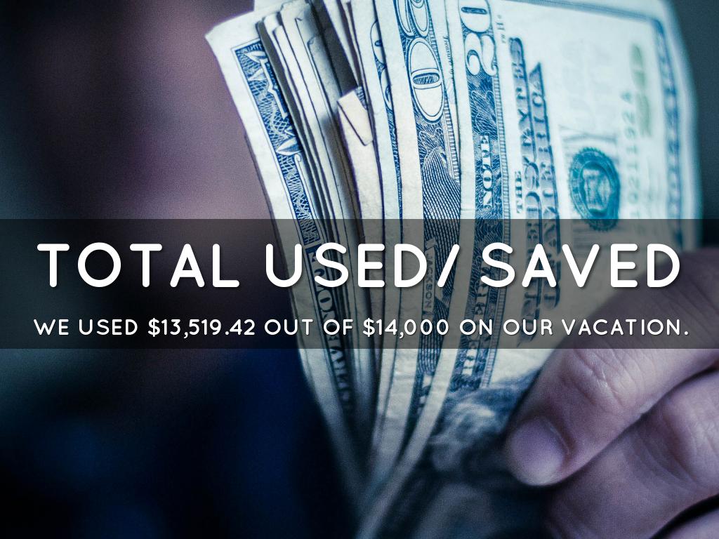 WE USED $13,519.42 OUT OF $14,000 ON OUR VACATION.