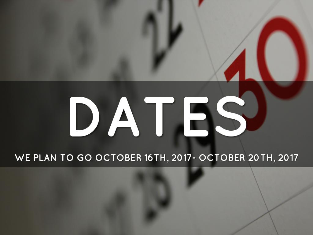 WE PLAN TO GO OCTOBER 16TH, 2017- OCTOBER 20TH, 2017