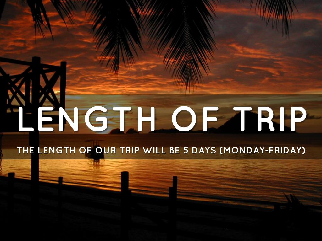 THE LENGTH OF OUR TRIP WILL BE 5 DAYS (MONDAY-FRIDAY)