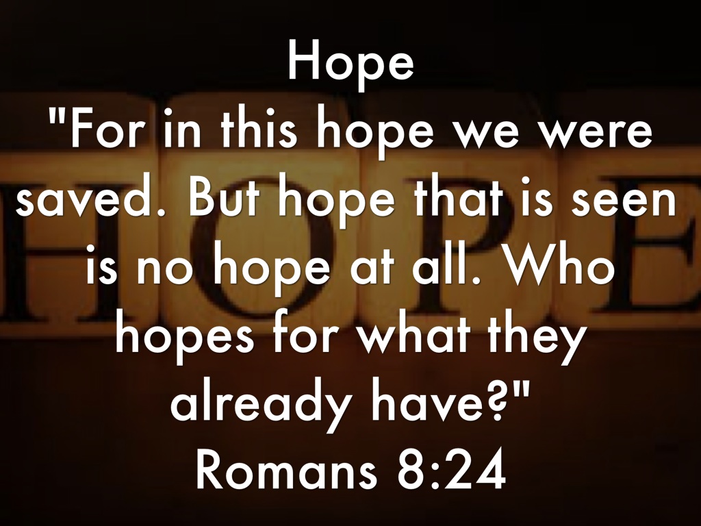 "For in this hope we were saved. But hope that is seen is no hope at all. Who hopes for what they already have?"
