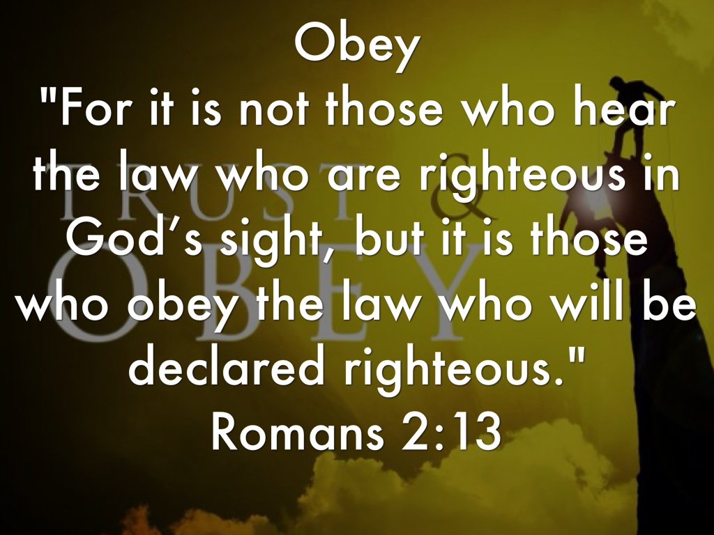 "For it is not those who hear the law who are righteous in God’s sight, but it is those who obey the law who will be declared righteous."