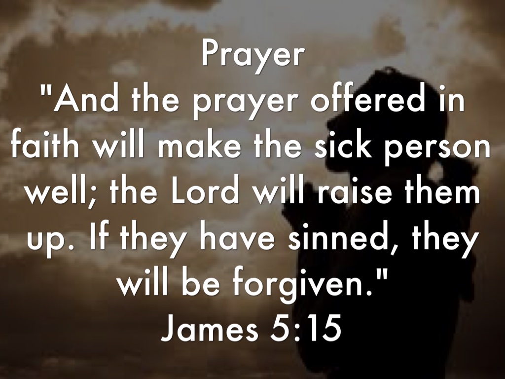 "And the prayer offered in faith will make the sick person well; the Lord will raise them up. If they have sinned, they will be forgiven."