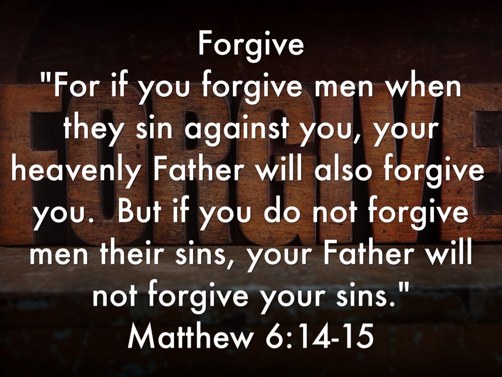 "For if you forgive men when they sin against you, your heavenly Father will also forgive you. But if you do not forgive men their sins, your Father will not forgive your sins."