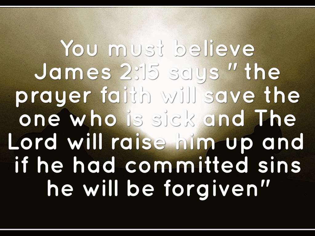 You must believe James 2:15 says " the prayer faith will save the one who is sick and The Lord will raise him up and if he had committed sins he will be forgiven"