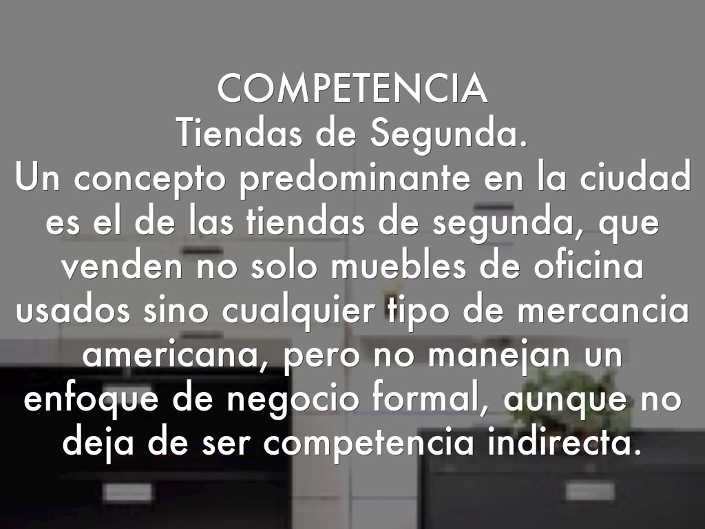 Un concepto predominante en la ciudad es el de las tiendas de segunda, que venden no solo muebles de oficina usados sino cualquier tipo de mercancia americana, pero no manejan un enfoque de negocio formal, aunque no deja de ser competencia indirecta.