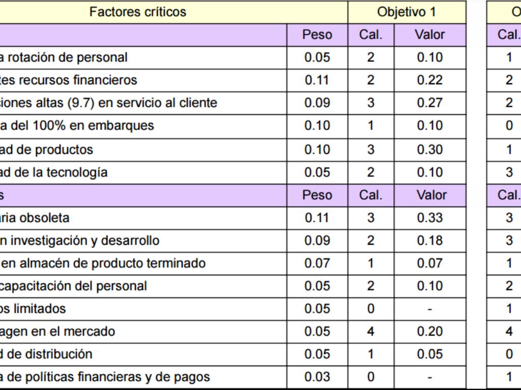 Matriz de selección de objetivos Saaty
