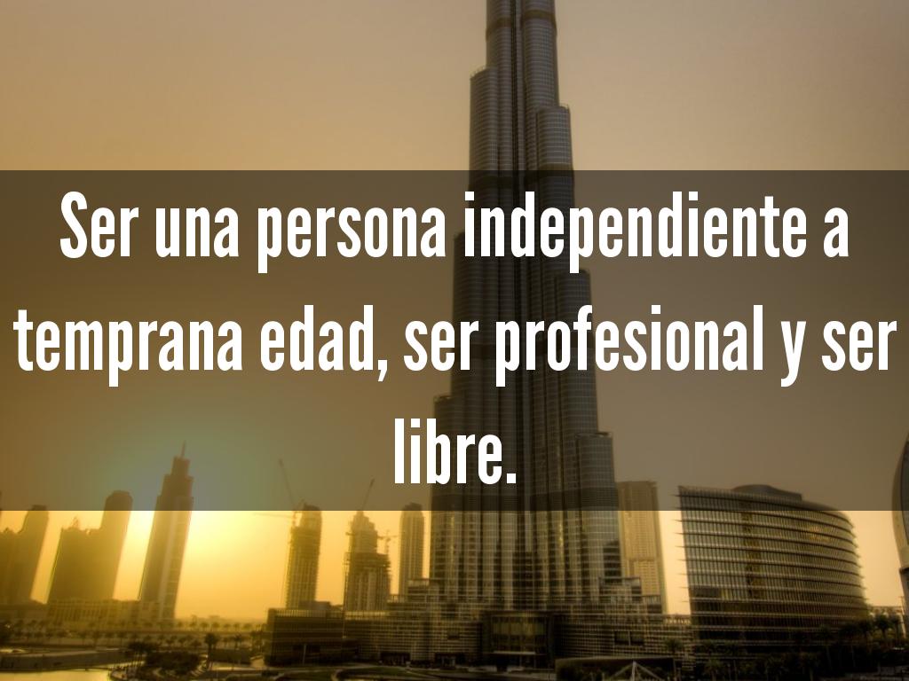 Ser una persona independiente a temprana edad, ser profesional y ser libre.