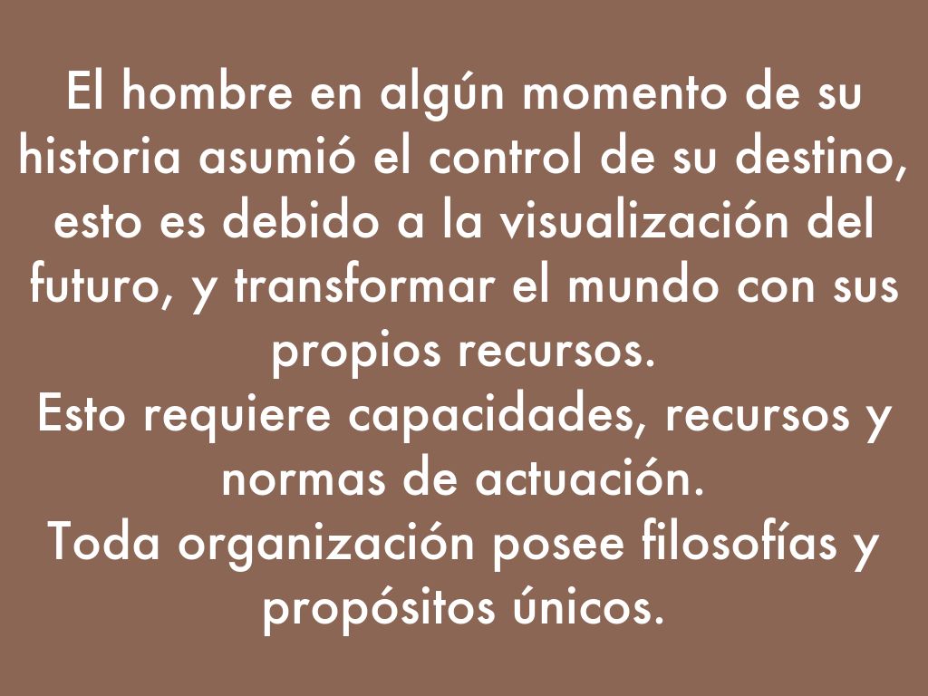El hombre en algún momento de su historia asumió el control de su destino, esto es debido a la visualización del futuro, y transformar el mundo con sus propios recursos.