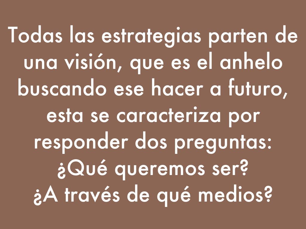 Todas las estrategias parten de una visión, que es el anhelo buscando ese hacer a futuro, esta se caracteriza por responder dos preguntas: