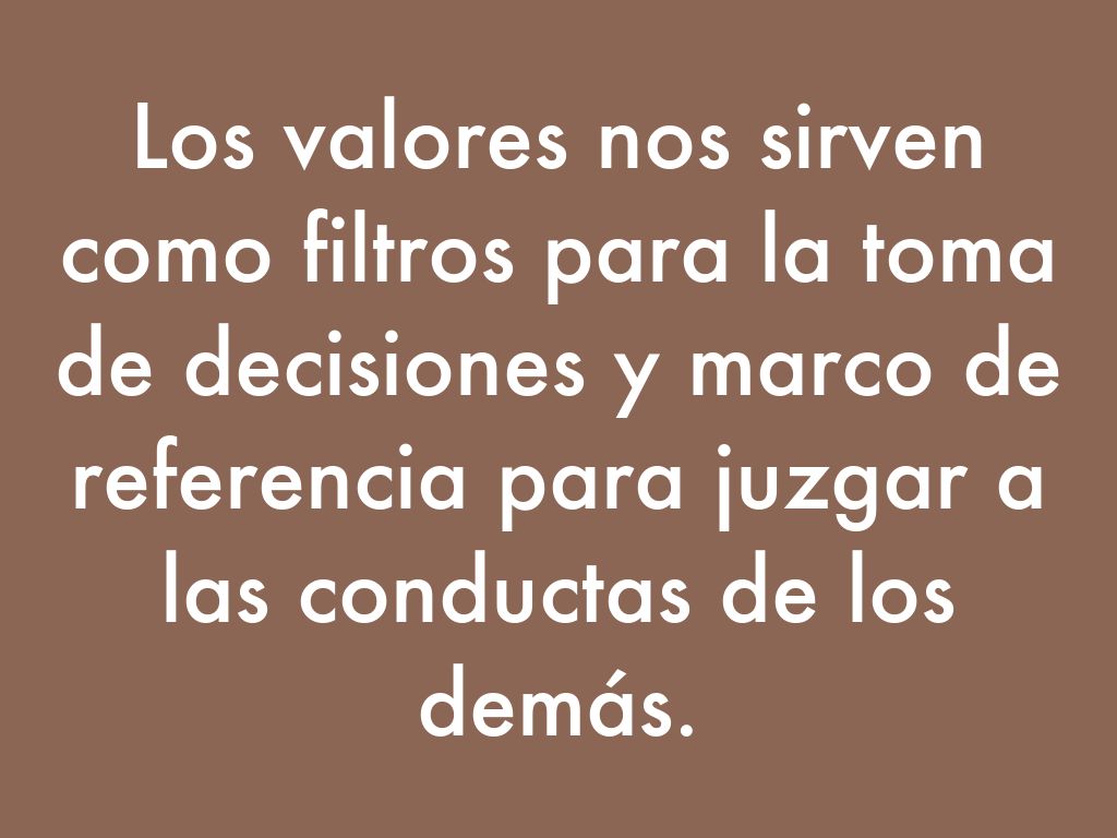 Los valores nos sirven como filtros para la toma de decisiones y marco de referencia para juzgar a las conductas de los demás.