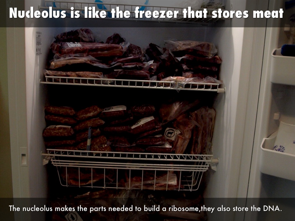 The nucleolus makes the parts needed to build a ribosome,they also store the DNA.