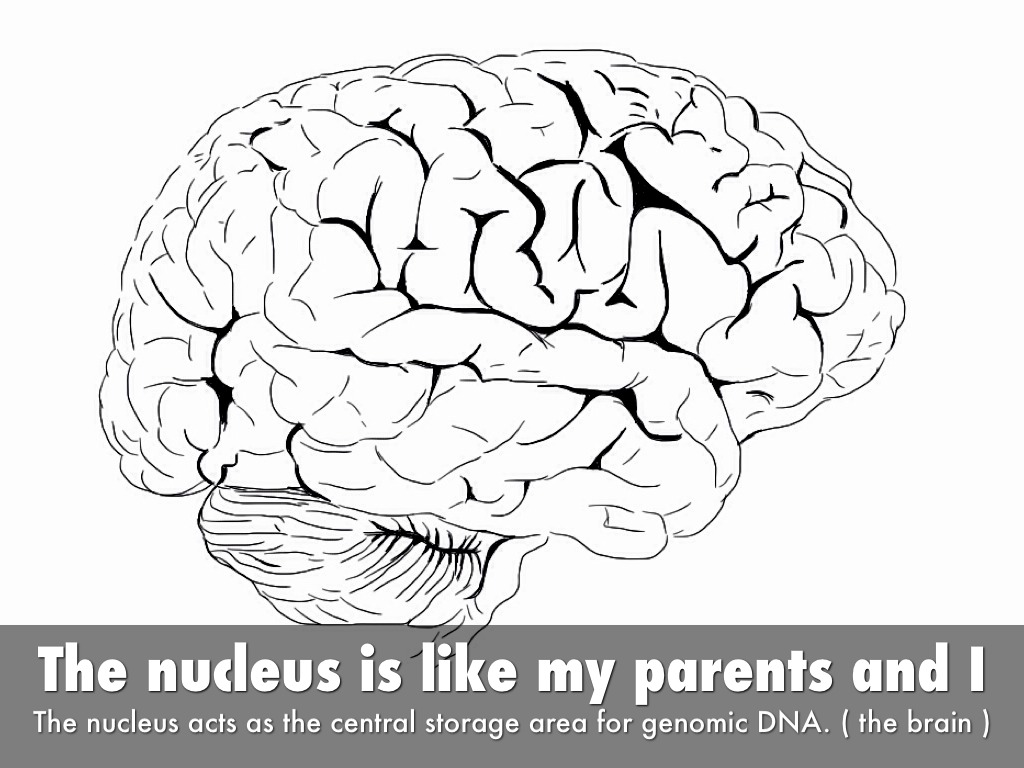 The nucleus acts as the central storage area for genomic DNA. ( the brain )
