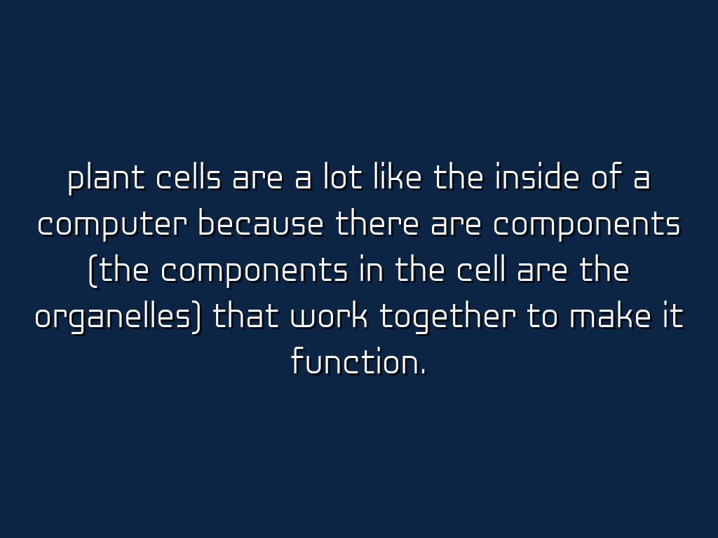 plant cells are a lot like the inside of a computer because there are components (the components in the cell are the organelles) that work together to make it function.