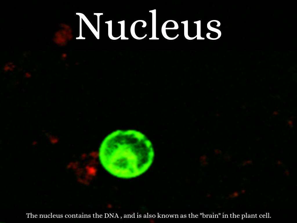 The nucleus contains the DNA , and is also known as the "brain" in the plant cell.