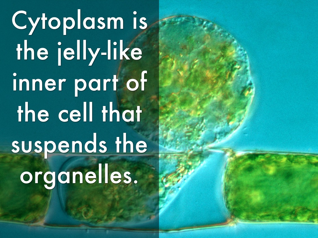 Cytoplasm is the jelly-like inner part of the cell that suspends the organelles.