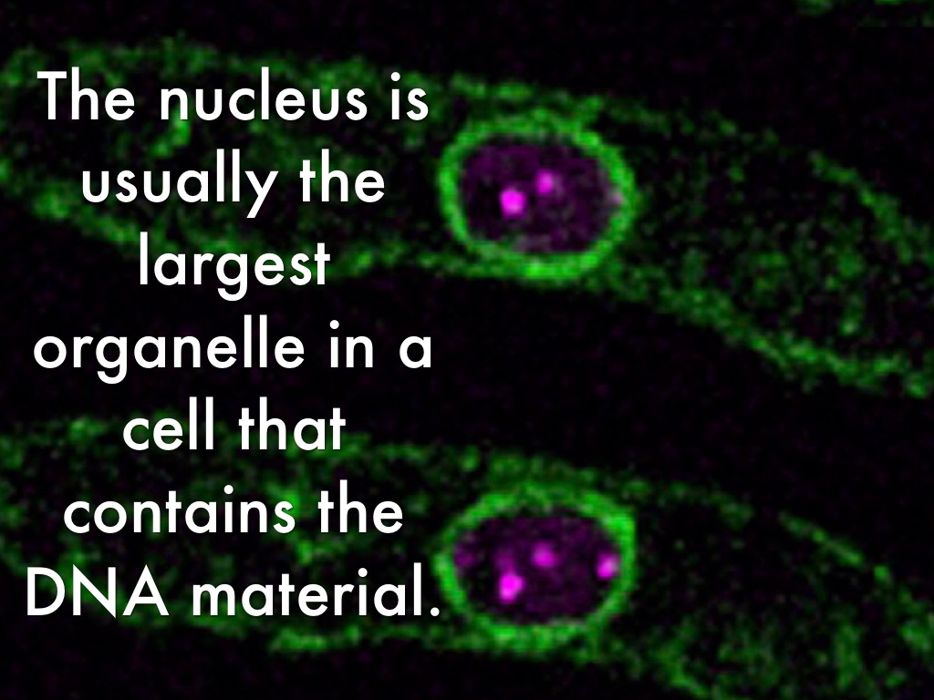 The nucleus is usually the largest organelle in a cell that contains the DNA material.