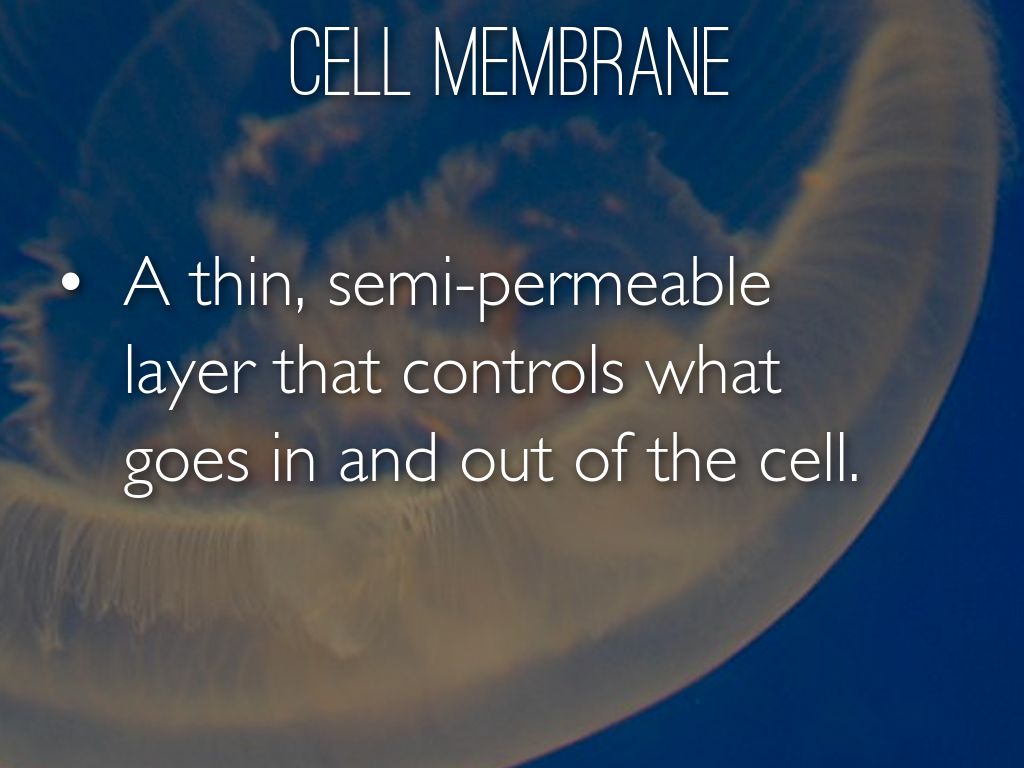 A thin, semi-permeable layer that controls what goes in and out of the cell.