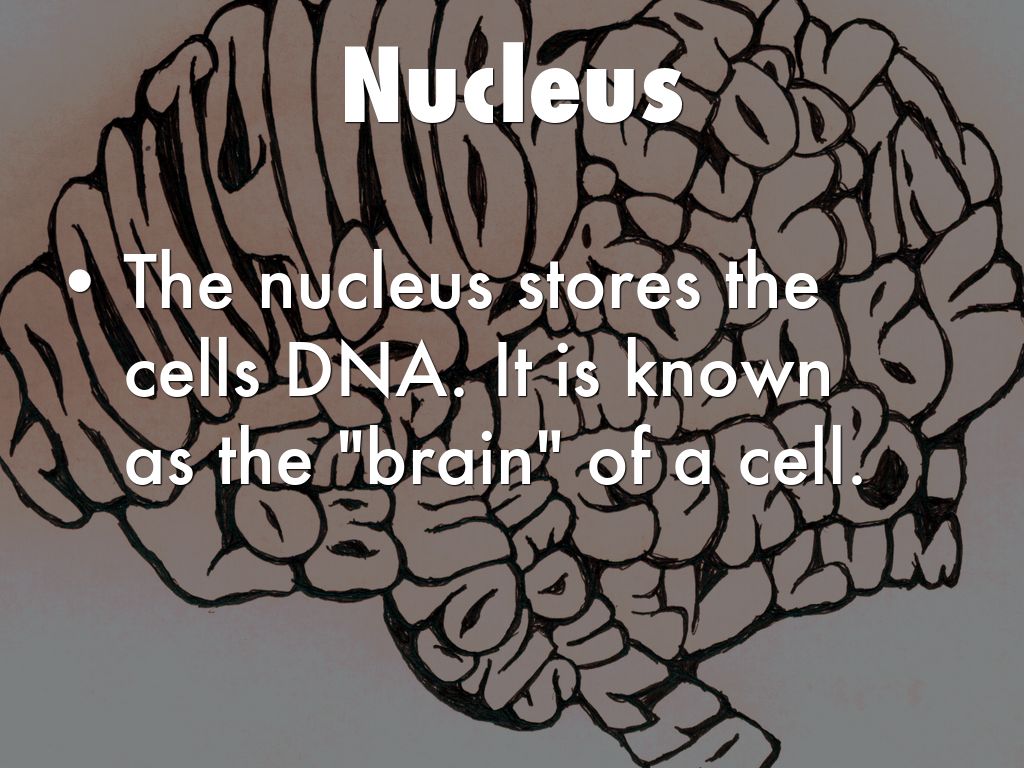 The nucleus stores the cells DNA. It is known as the "brain" of a cell.