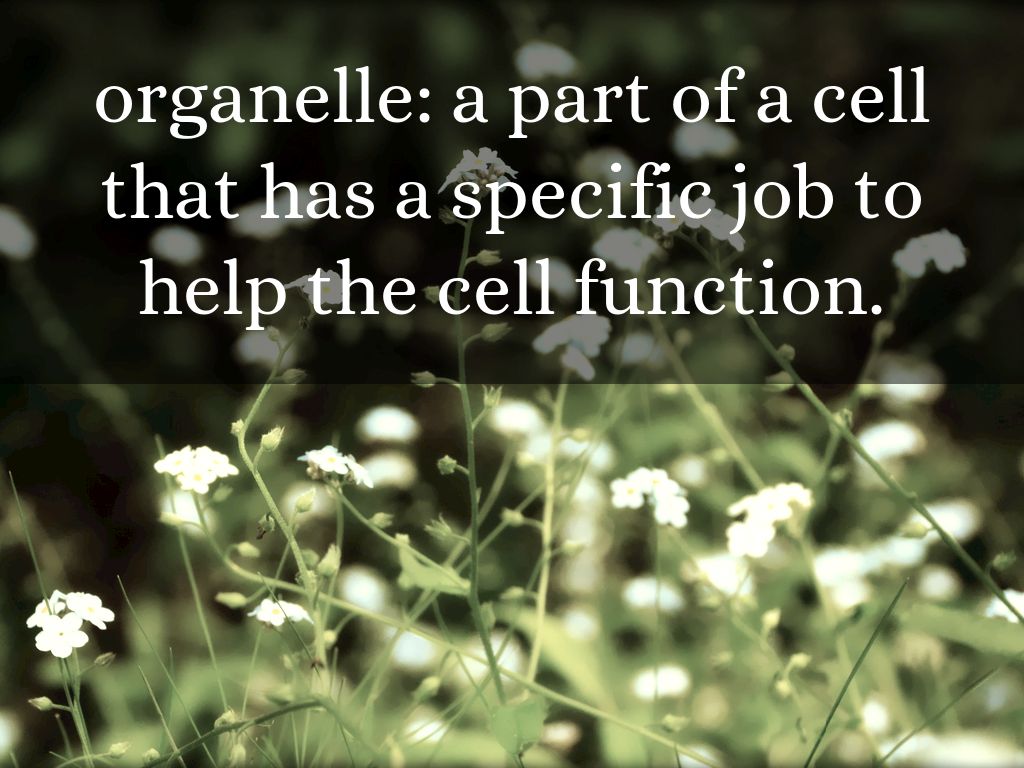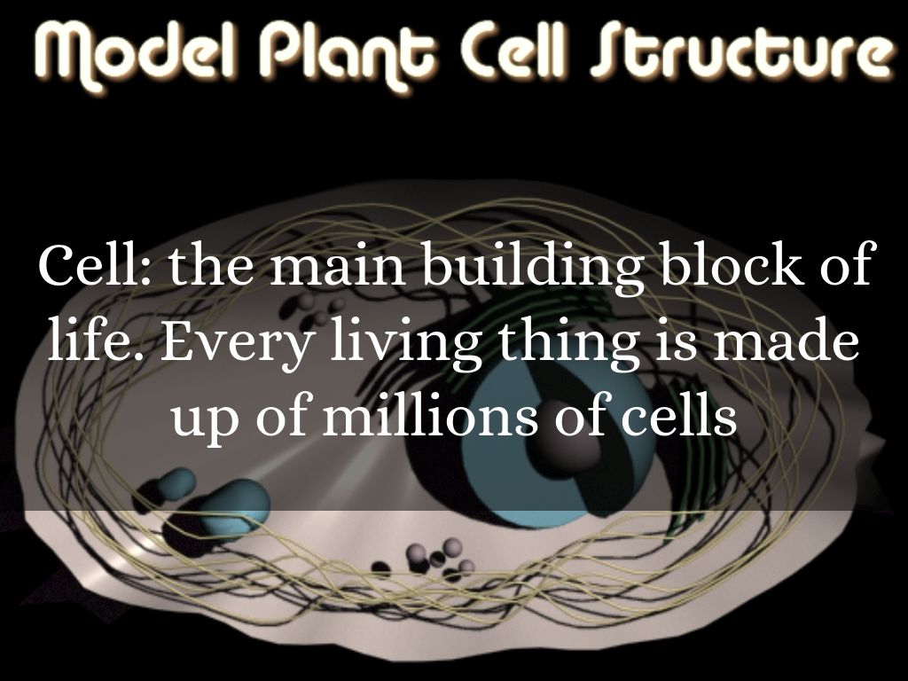 Cell: the main building block of life. Every living thing is made up of millions of cells