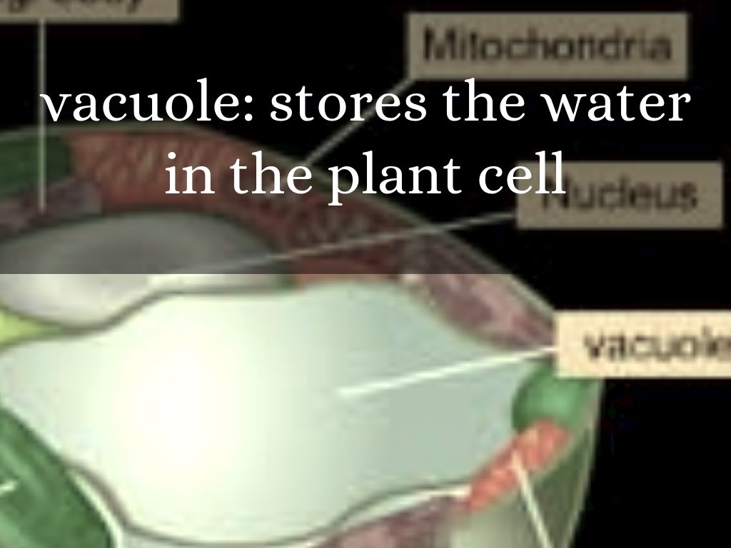 Cell Membrane:a slim layer that lets things in and out of the plant cell