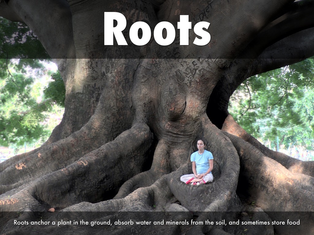 Roots anchor a plant in the ground, absorb water and minerals from the soil, and sometimes store food