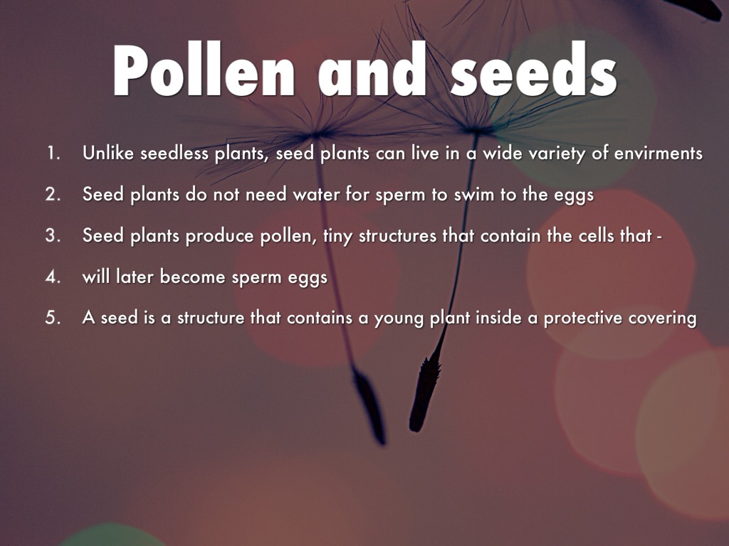 Unlike seedless plants, seed plants can live in a wide variety of envirments
