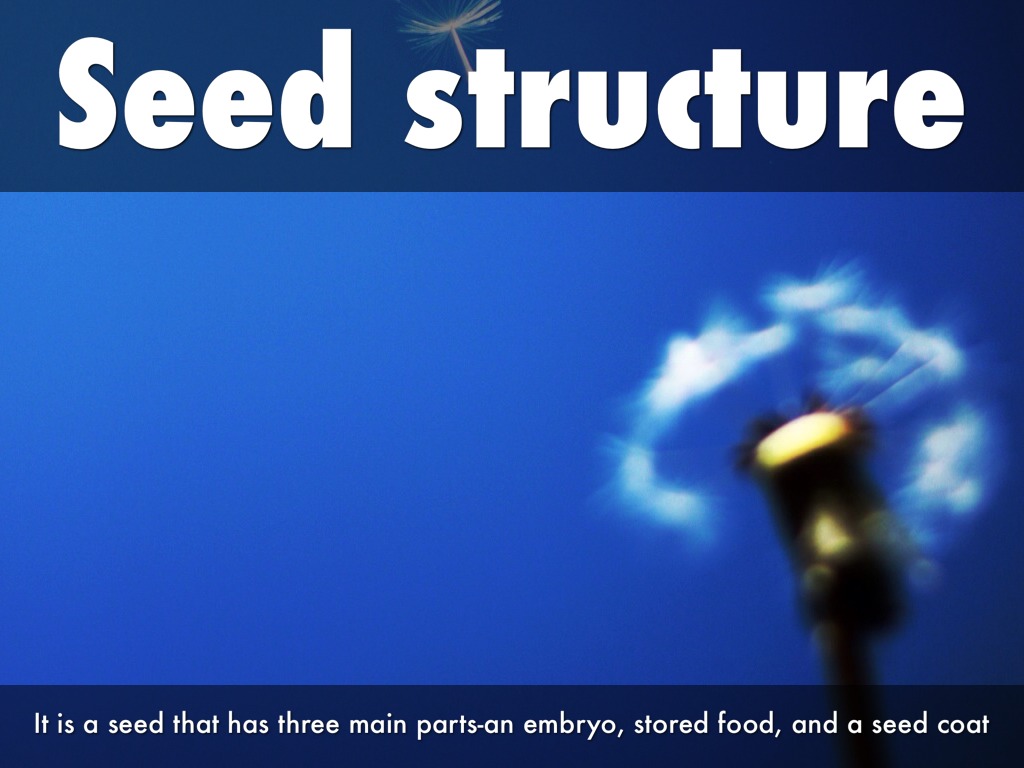 It is a seed that has three main parts-an embryo, stored food, and a seed coat
