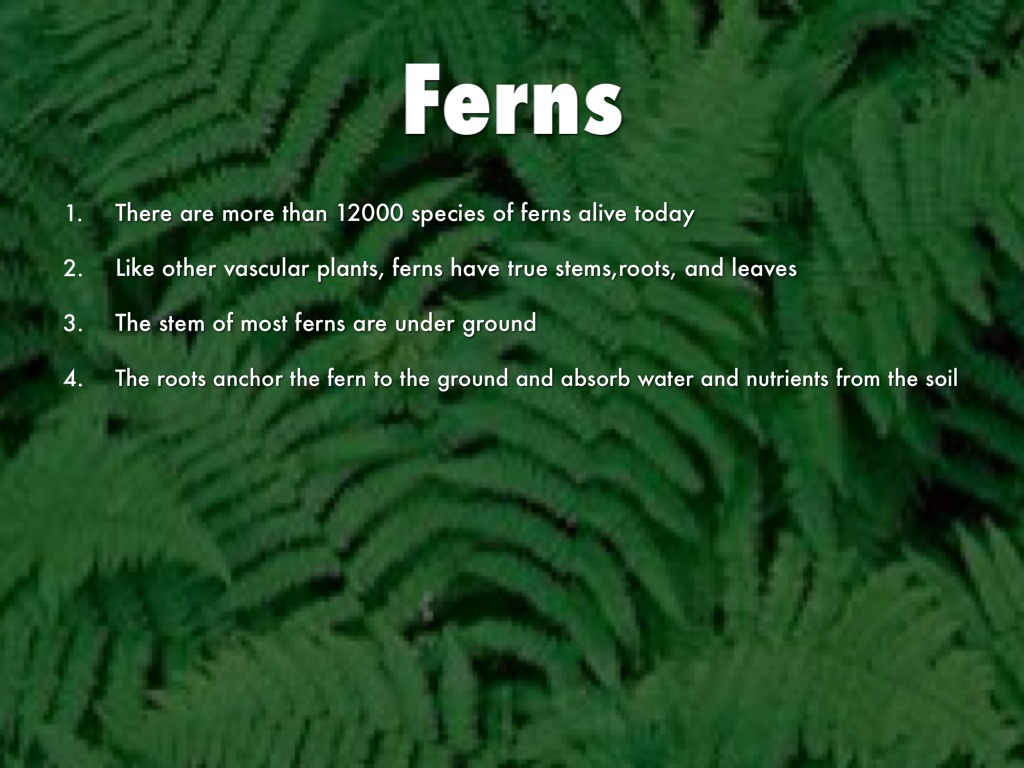 Like other vascular plants, ferns have true stems,roots, and leaves