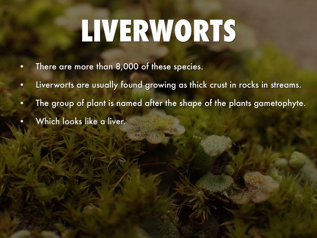 Liverworts are usually found growing as thick crust in rocks in streams.