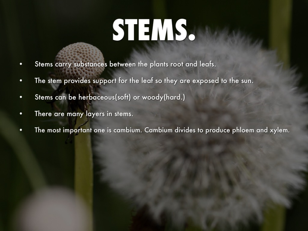 The most important one is cambium. Cambium divides to produce phloem and xylem.