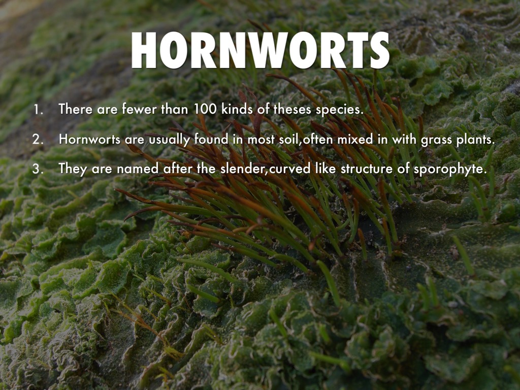 Hornworts are usually found in most soil,often mixed in with grass plants.